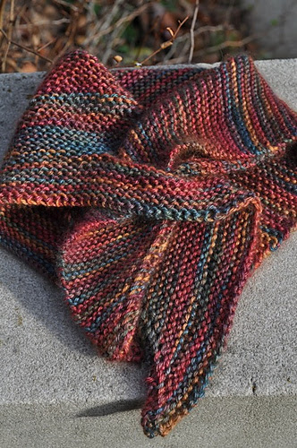 This scarf uses a single skein of fingering weight yarn. We knit one up in our Crazyfoot yarn (colorway Harmony Mallard) and everyone who sees it thinks it is great. The tails wrap around and hold the scarf in place. I plan to knit this scarf for sure!!